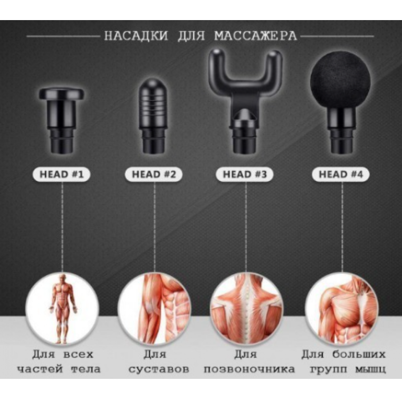 | Особенности | Устройство влияет на мышечные ткани и внутренние слои сухожилий. Аксессуар выполнен в виде пистолета и удобно сидит в руке. В комплекте вы найдете 4 насадки, которые повлияют на определенные группы мышц ног, ягодиц, спины, груди, запястья и лодыжек. Всего за 15 минут массажа вы избавитесь от неприятных ощущений и улучшите кровообращение. |