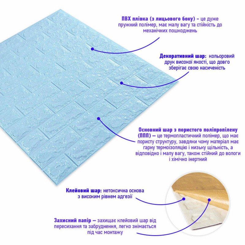 Самоклеящиеся 3D панели – декоративное покрытие для стен, выполненное из легкого и прочного материала – пористого полипропилена (ППП). Основная особенность - рельефный рисунок в виде кирпичей в широком разнообразии цветовой гаммы и наличие клеевого слоя, что позволяет установить панели без необходимости применения дополнительных материалов.
