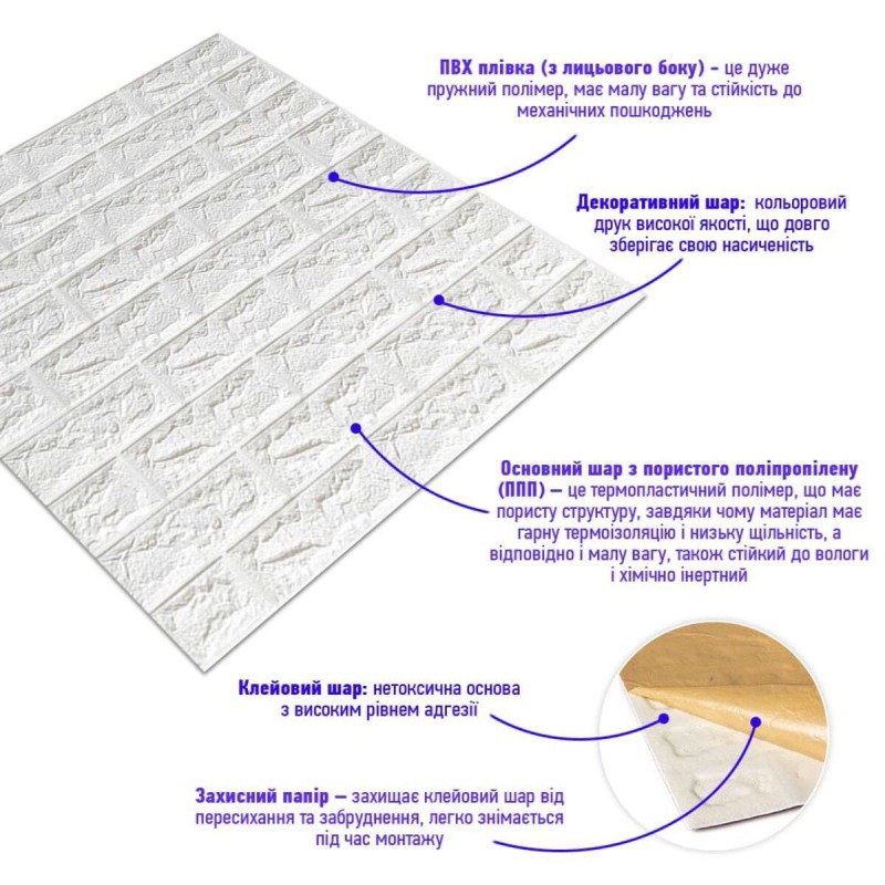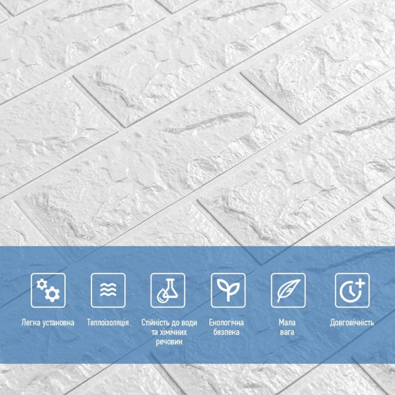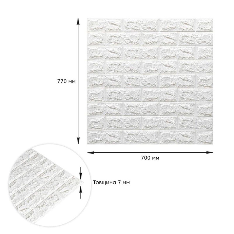 3D панель самоклеющаяся 700x770x7мм кирпич Белый (001-7) SW-00000047