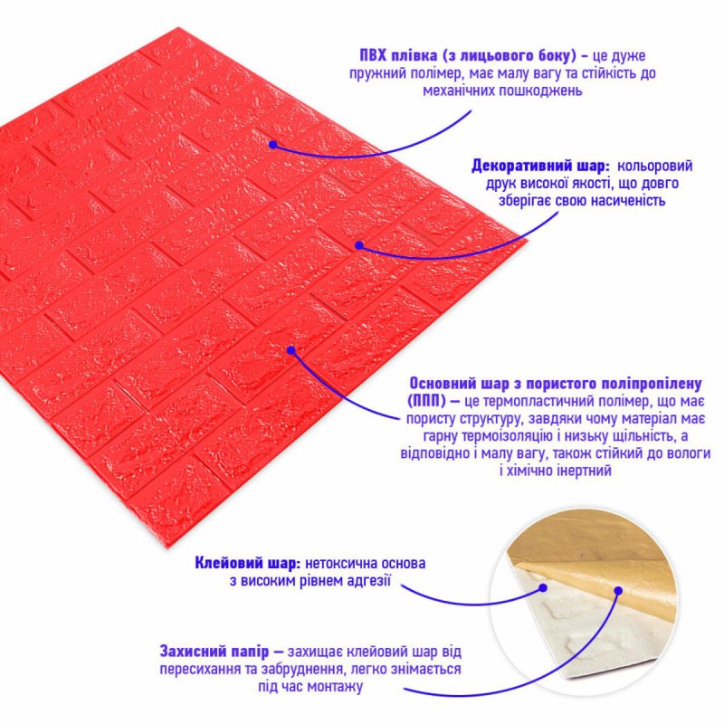 3D панель самоклеющаяся 700x770x7мм кирпич Красный (008-7) SW-00000054