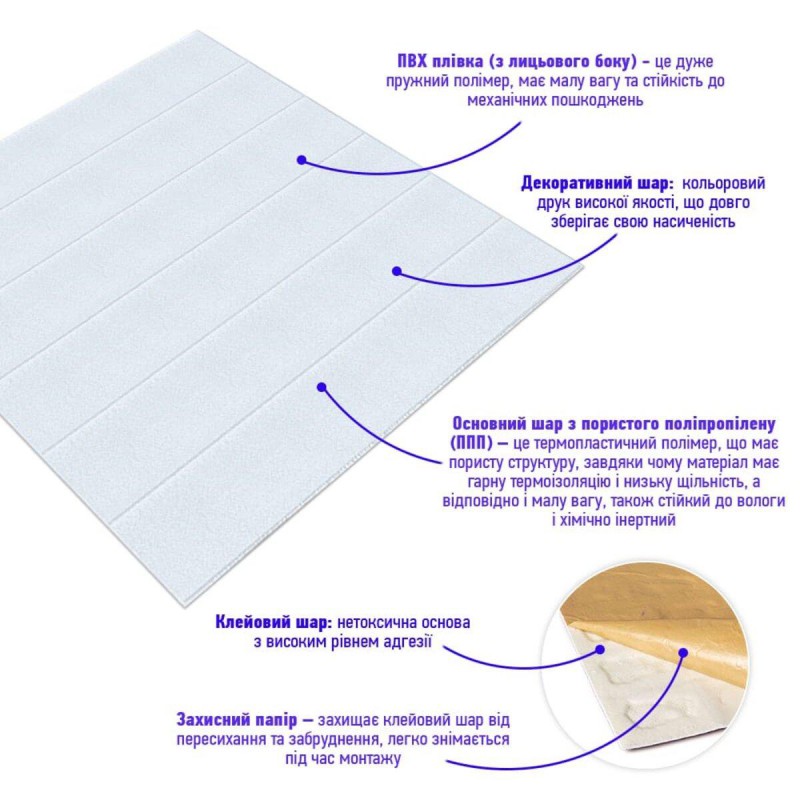 Самоклеящиеся 3D панели – декоративное покрытие для стен, выполненное из легкого и прочного материала – пористого полипропилена (ППП). Основная особенность - рельефный рисунок в виде кирпичей в широком разнообразии цветовой гаммы и наличие клеевого слоя, что позволяет установить панели без необходимости применения дополнительных материалов.