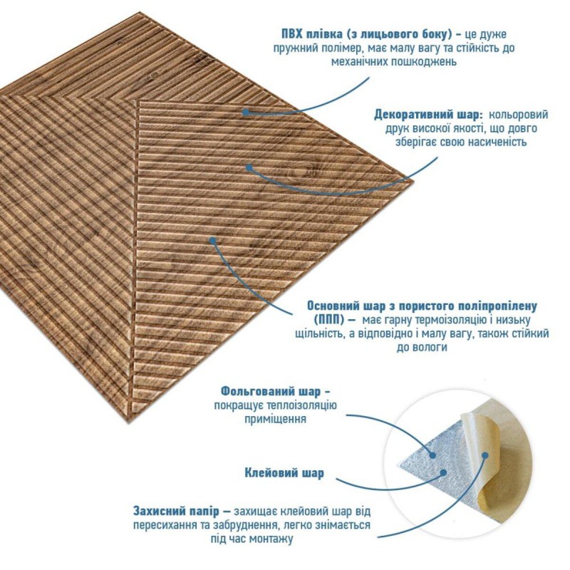 Панель стеновая 3D 500х500х5мм Бамбук темный Дуб SW-00002886