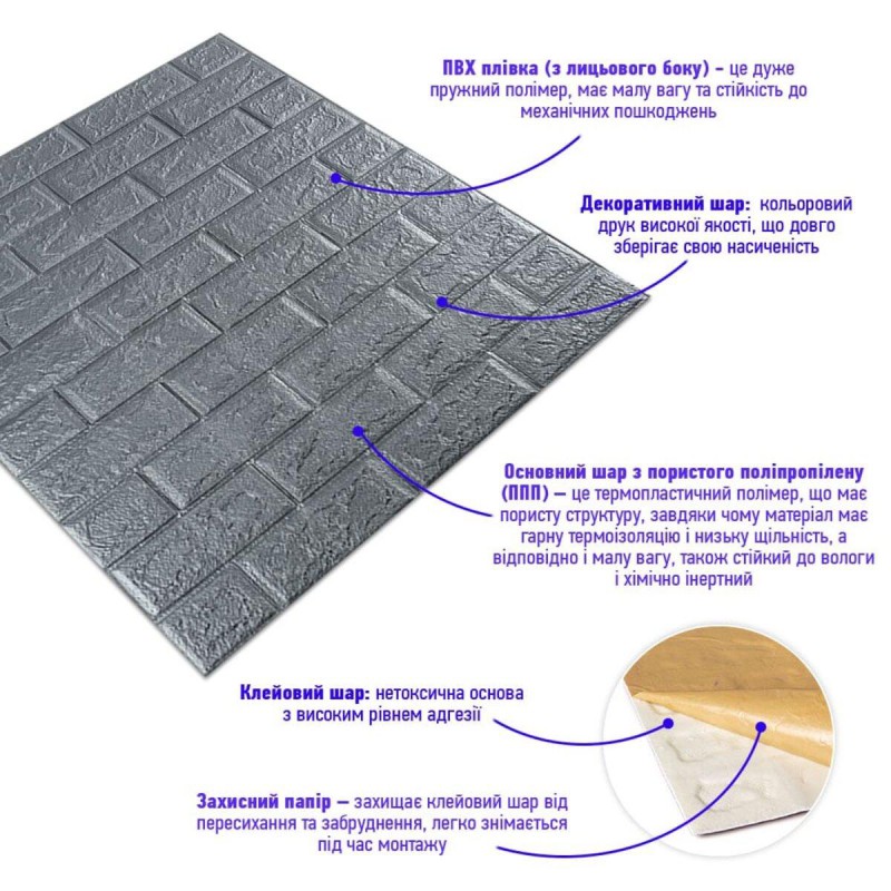 Самоклеящиеся 3D панели – декоративное покрытие для стен, выполненное из легкого и прочного материала – пористого полипропилена (ППП). Основная особенность - рельефный рисунок в виде кирпичей в широком разнообразии цветовой гаммы и наличие клеевого слоя, что позволяет установить панели без необходимости применения дополнительных материалов.