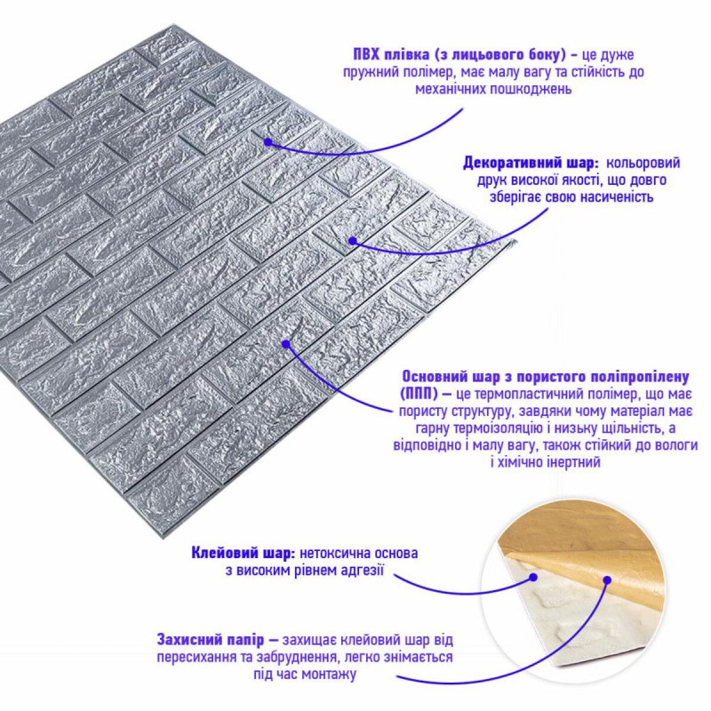 Самоклеящиеся 3D панели – декоративное покрытие для стен, выполненное из легкого и прочного материала – пористого полипропилена (ППП). Основная особенность - рельефный рисунок в виде кирпичей в широком разнообразии цветовой гаммы и наличие клеевого слоя, что позволяет установить панели без необходимости применения дополнительных материалов.