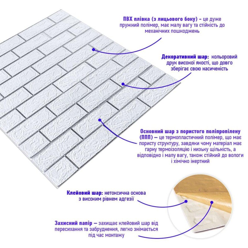 Самоклеящиеся 3D панели – декоративное покрытие для стен, выполненное из легкого и прочного материала – пористого полипропилена (ППП). Основная особенность - рельефный рисунок в виде кирпичей в широком разнообразии цветовой гаммы и наличие клеевого слоя, что позволяет установить панели без необходимости применения дополнительных материалов.