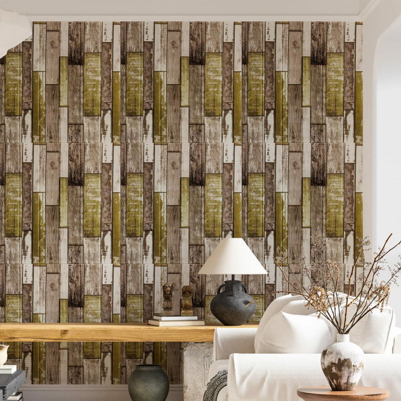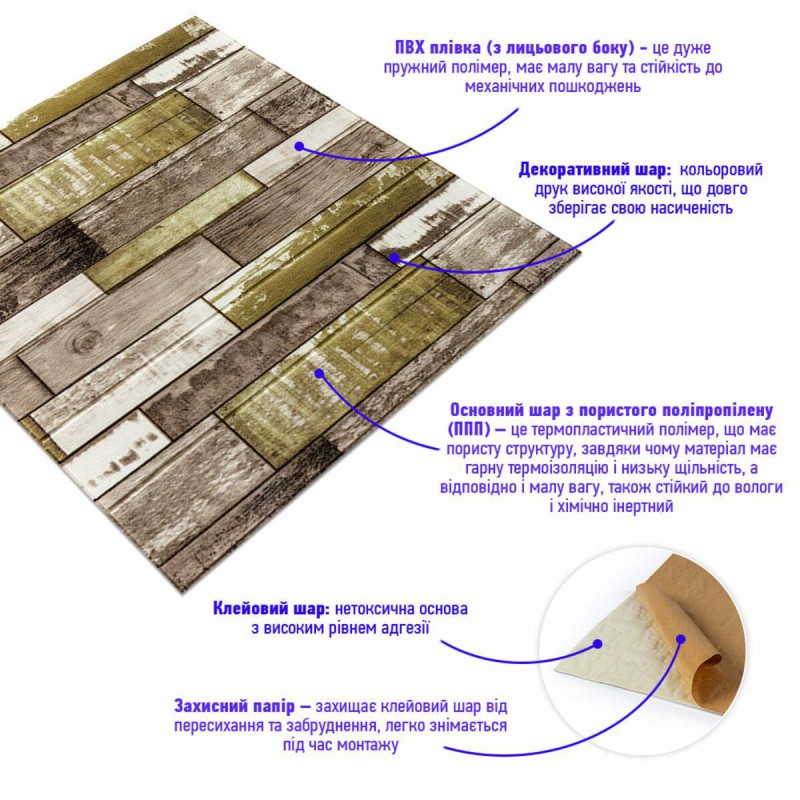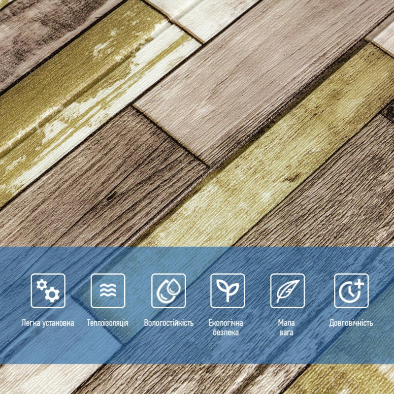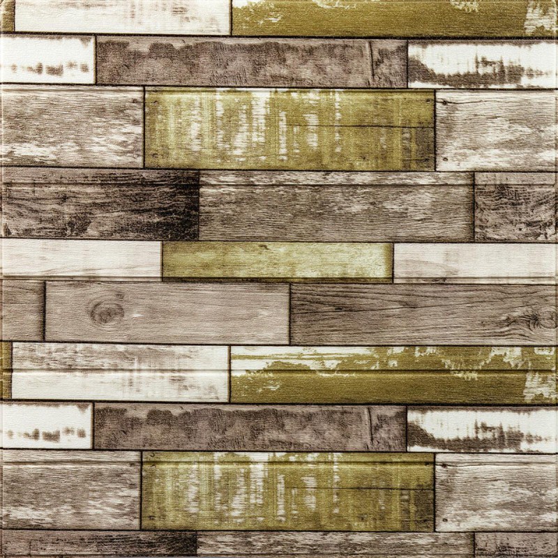 Самоклеющаяся декоративная 3D панель 700x700x4мм Зелёно-коричневое дерево (378) SW-00000883