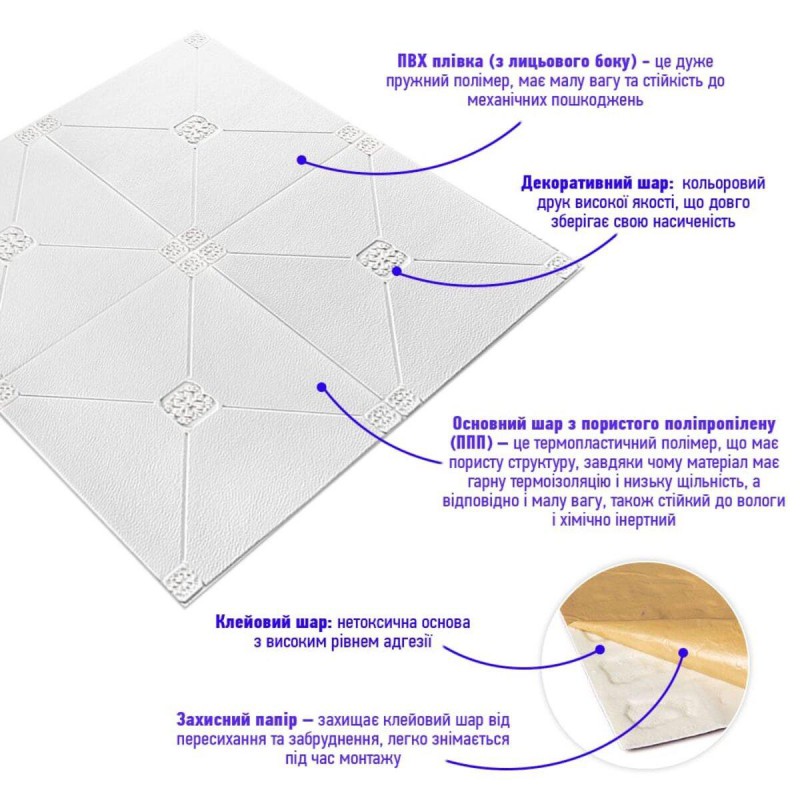 Самоклеющаяся декоративная потолочно-стеновая 3D панель 700x700x4.5мм Плитка (164) SW-00000181