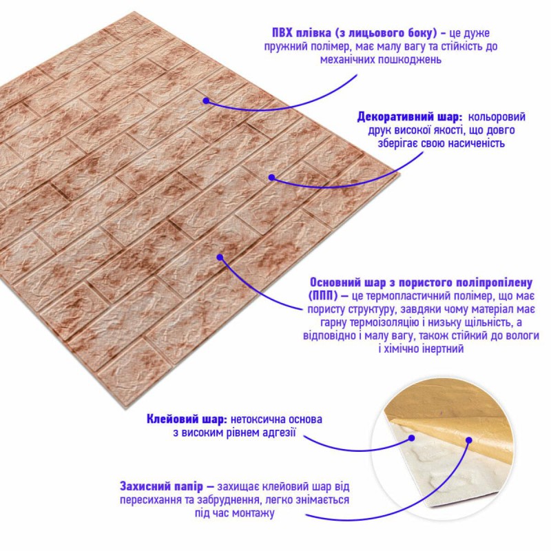 Декоративная 3D панель самоклейка 700x770x5мм Мрамор красный (кирпич) (063) SW-00000035