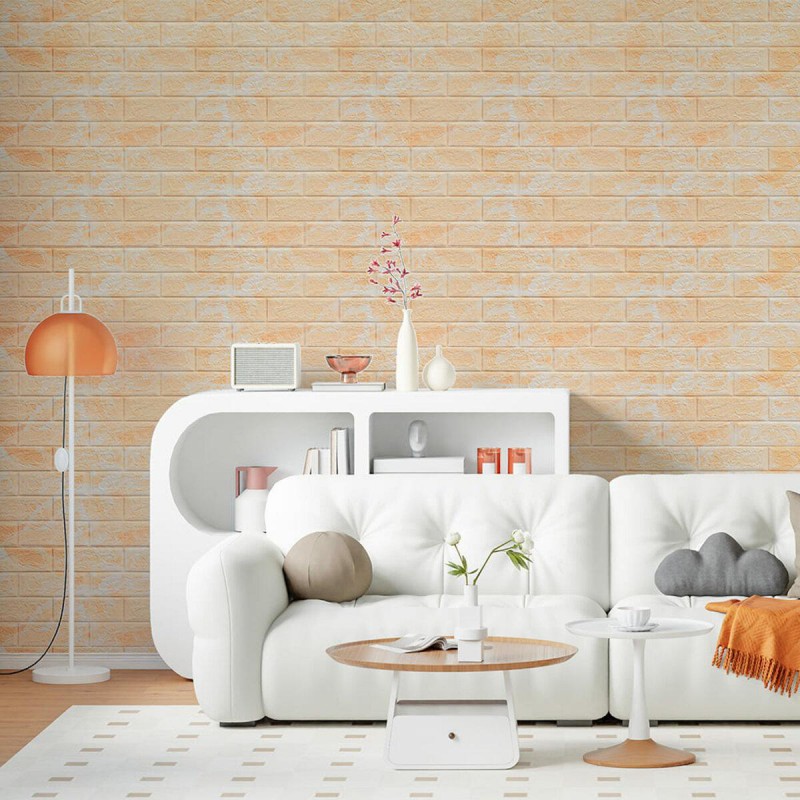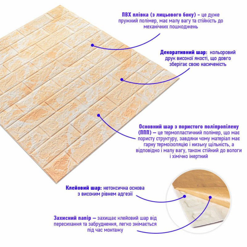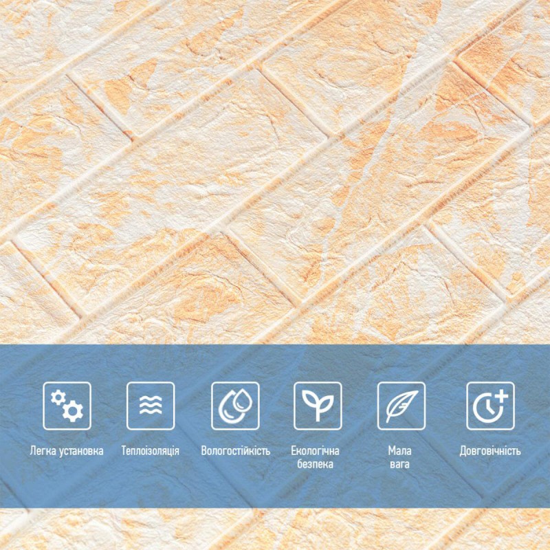 Декоративная 3D панель самоклейка под кирпич Бежевый мрамор 700x770x5мм