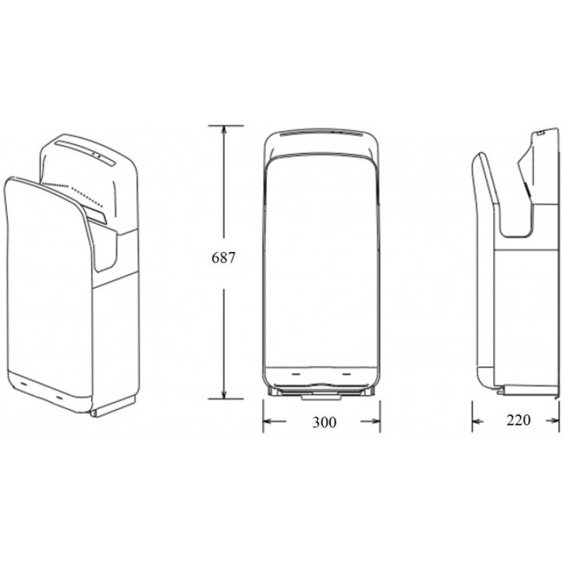 Скорость воздушного потока составляет 90 м/с, при температуре 45-60 °С. Все это позволяет быстро производить сушку рук не пересушивая кожу.