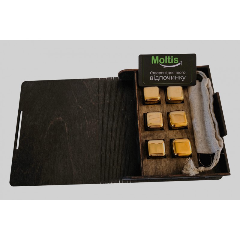Металлические кубики для виски Moltis Relax, 6 шт, золотой цвет (с гравировкой) MBG - 10508
