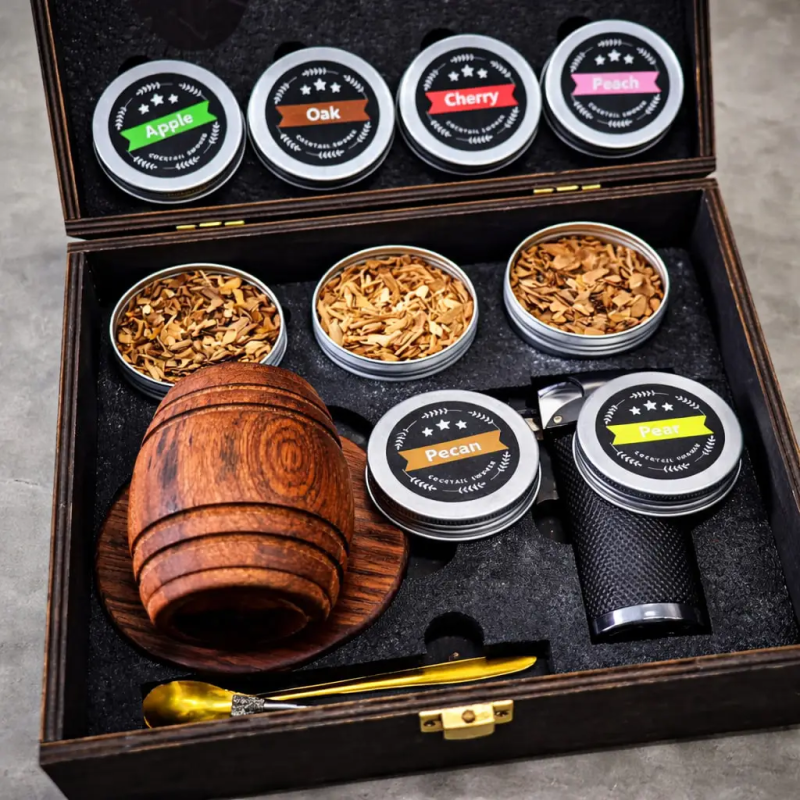 деревянный смокер для напитков с металлической камерой;