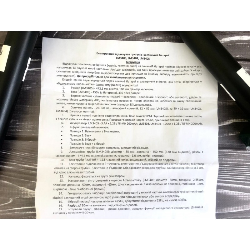 - Звуковые волны распространяются на глубину до 1 м. Отпугиватель не оказывает негативного воздействия на земляных червей и жуков . При полном заряде аккумулятора отпугиватель кротов работает 24 часа в сутки даже в пасмурные дни